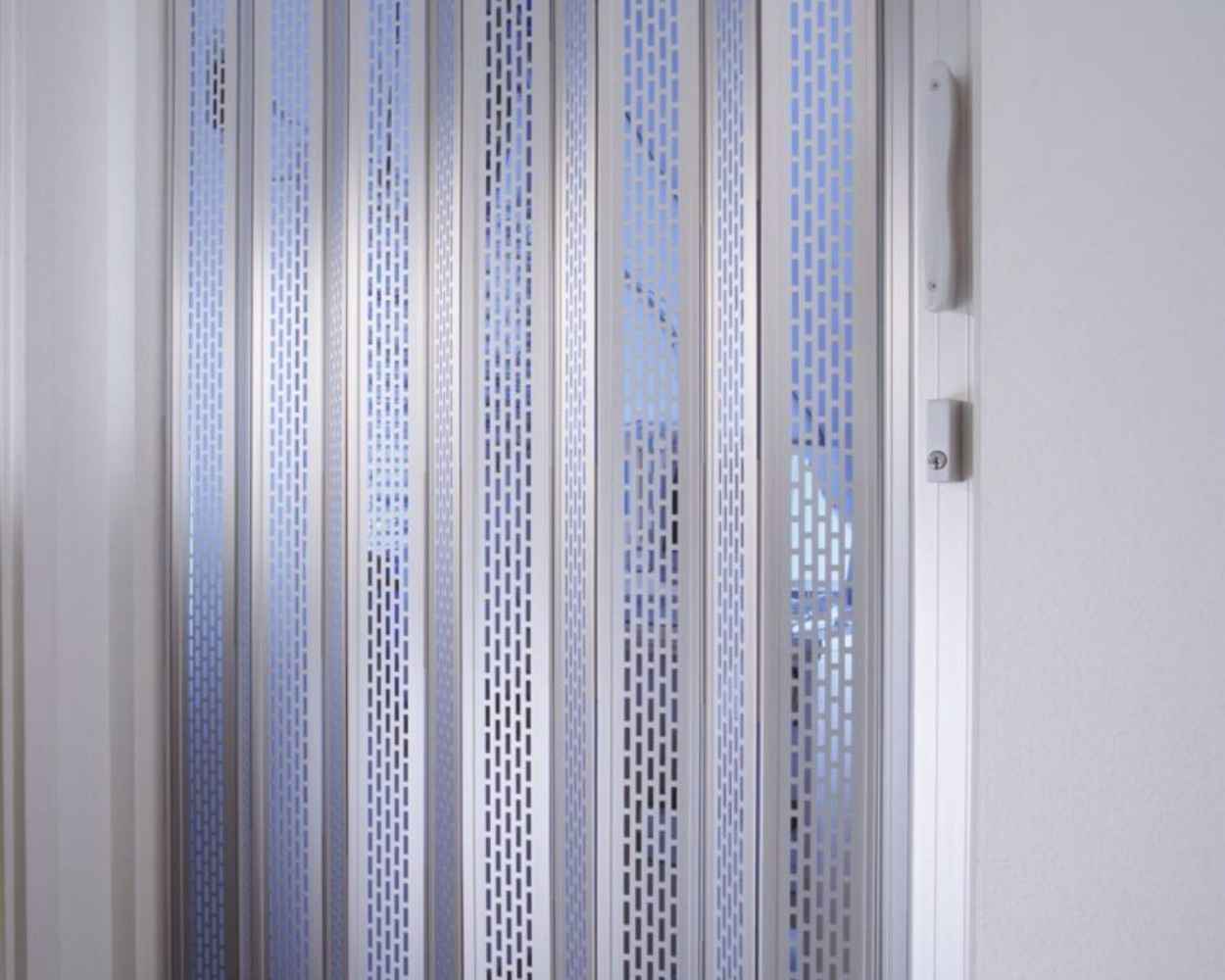 Accordion doors are folding partitions that glide smoothly on an overhead track, stacking compactly when open and providing full coverage when closed.