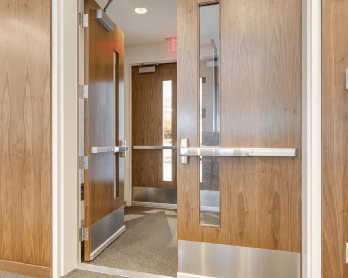 Designed for high-traffic commercial environments, these doors balance appearance and performance — ideal for offices, schools, healthcare facilities, and more.