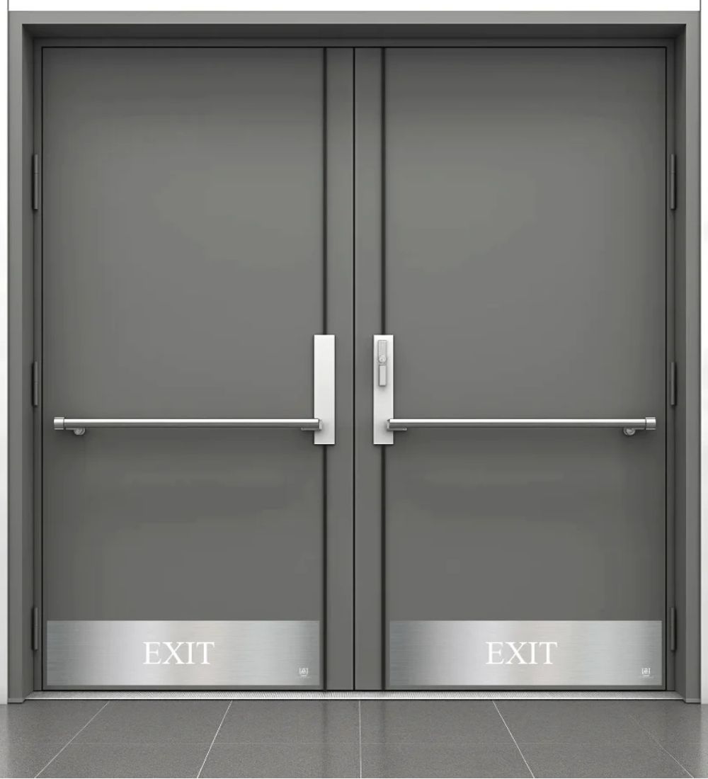 Durable stainless steel and aluminum plates protect door surfaces and enhance accessibility. Designed for function and longevity in high-traffic commercial environments.