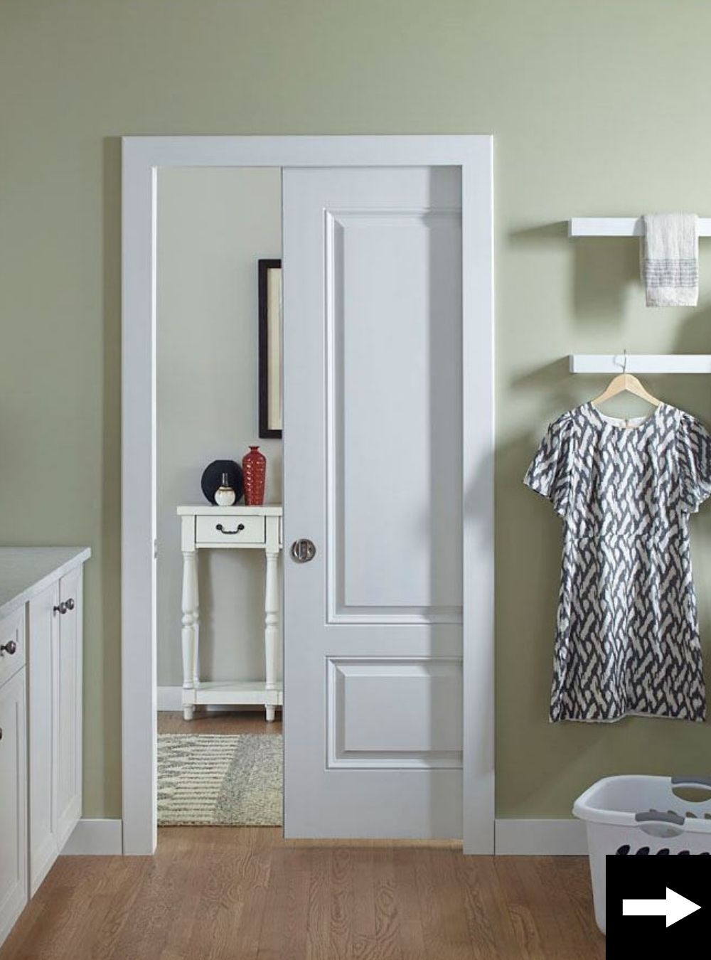 Maximize space and add a modern touch with doors that glide neatly into the wall when opened.