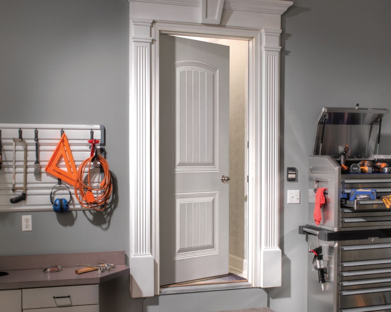 Not anymore. Today’s fire-rated models come in residential veneers, paint finishes, and panel designs that blend naturally into hallways, garages, and utility spaces.