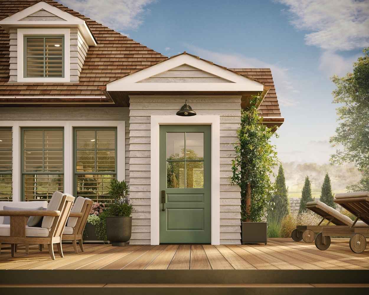 This category, built with durable frames-vinyl, fiberglass, aluminum, or wood-clad-and insulated glass-helps in reducing drafts and stabilizing the temperature inside. Patio doors combine expansive views with everyday convenience in a design that works for either modern or traditional homes. Options like built-in blinds, sidelites, and transoms can also be added to control light and privacy as desired.