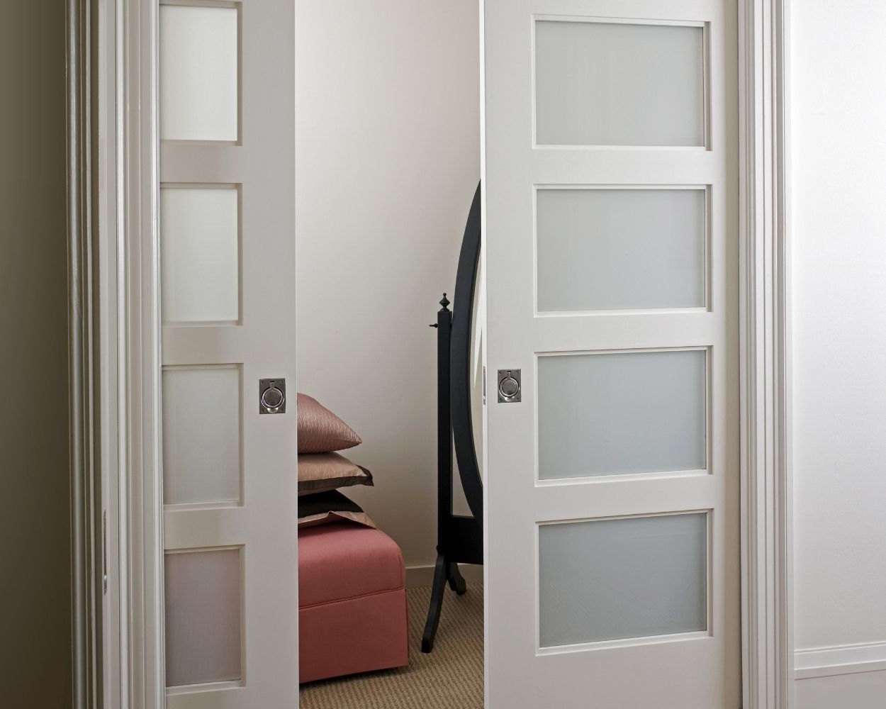 Maximize space and add a modern touch with doors that glide neatly into the wall when opened.