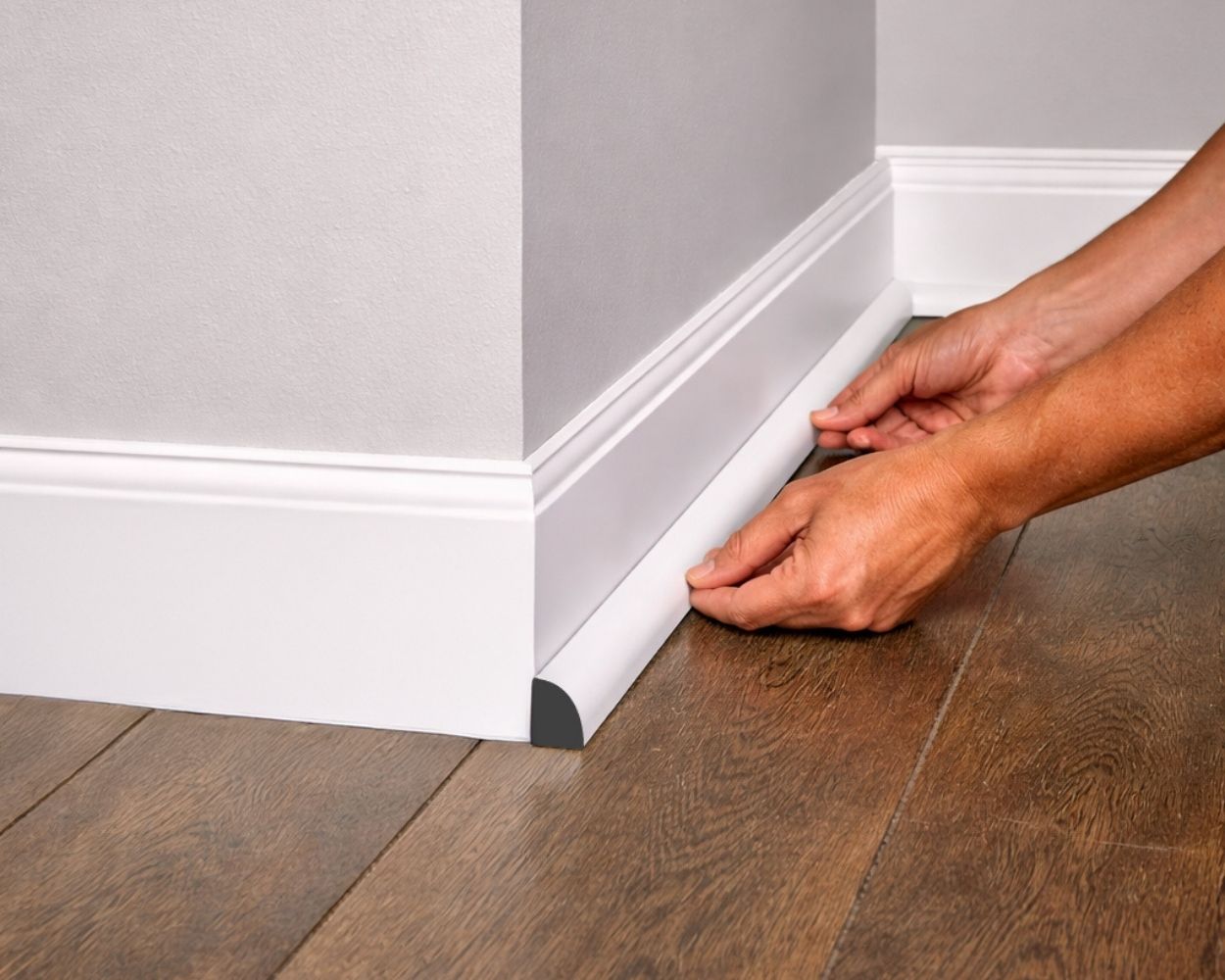 Create a seamless edge along hardwood or tile floors for a finished appearance.