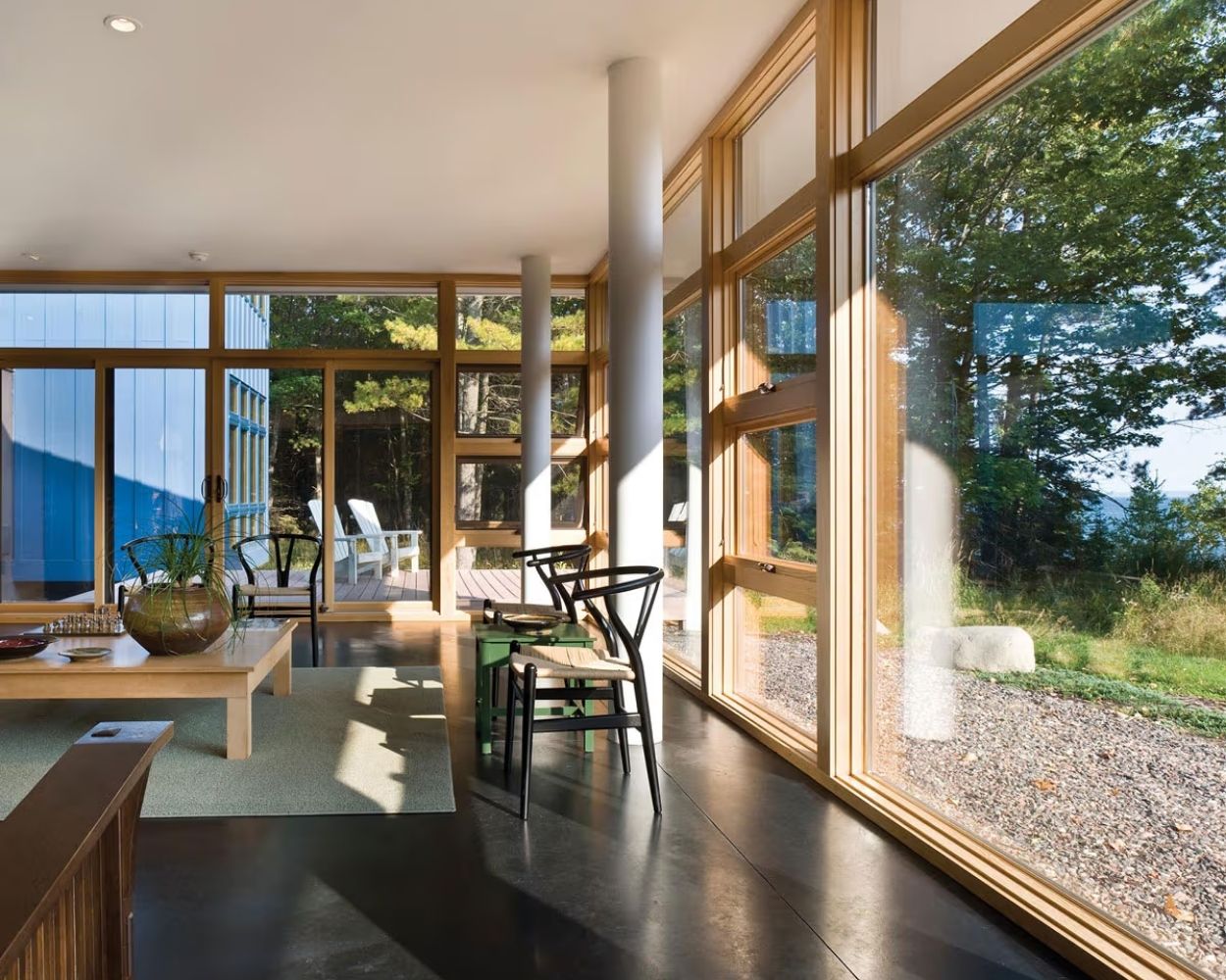 Two glass panels meet seamlessly at the corner to create a dramatic, unobstructed view and flood interiors with light.