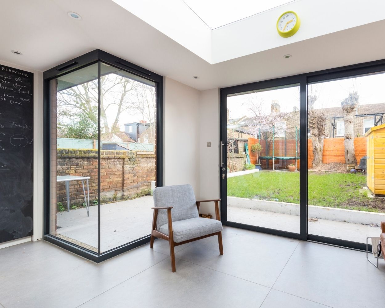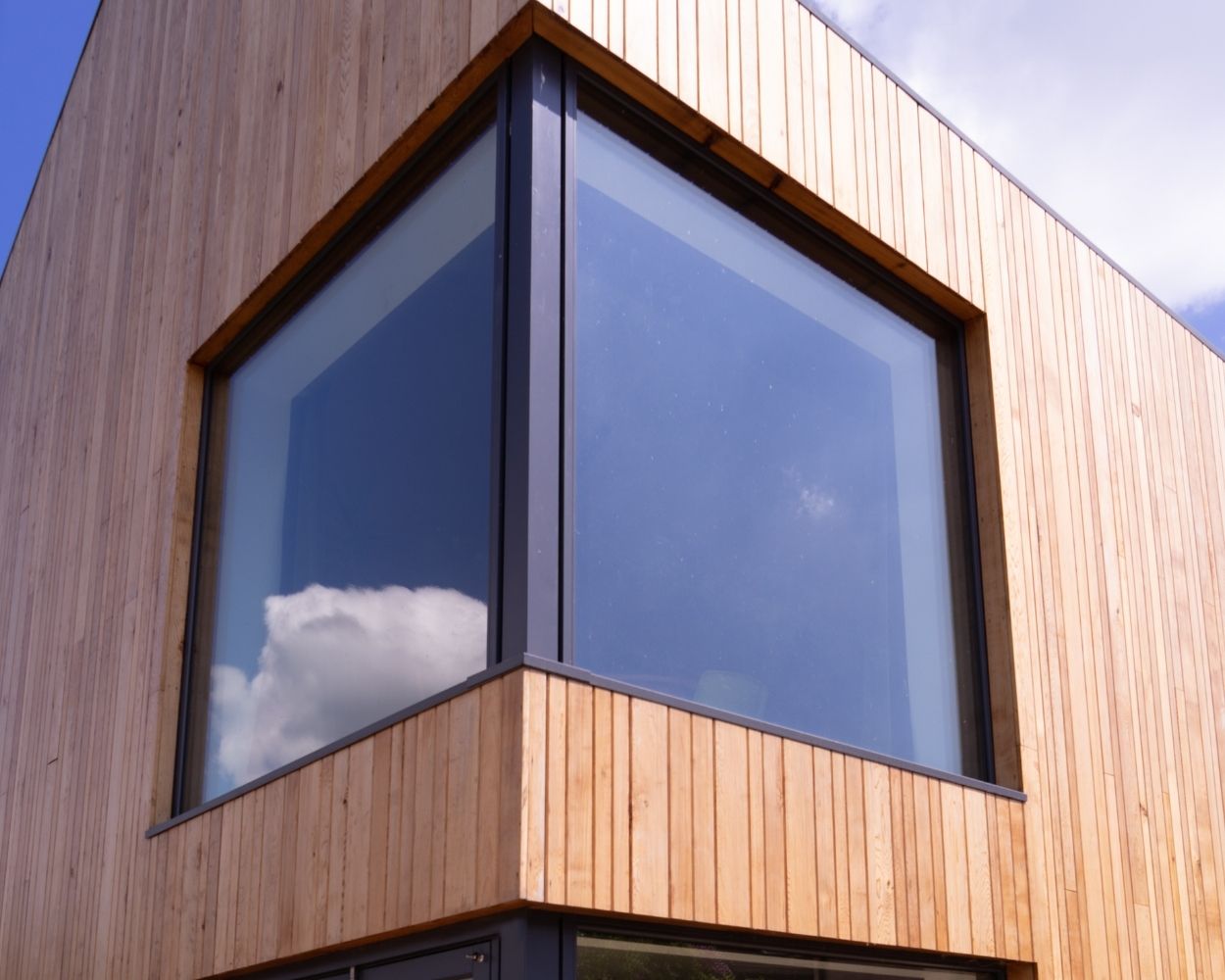 Two glass panels meet seamlessly at the corner to create a dramatic, unobstructed view and flood interiors with light.