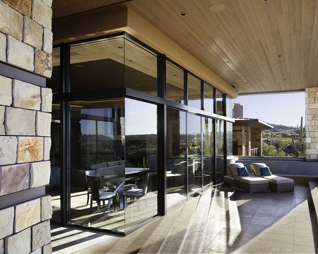 Panels glide horizontally along a track, offering wide, unobstructed views and smooth, space-saving operation.