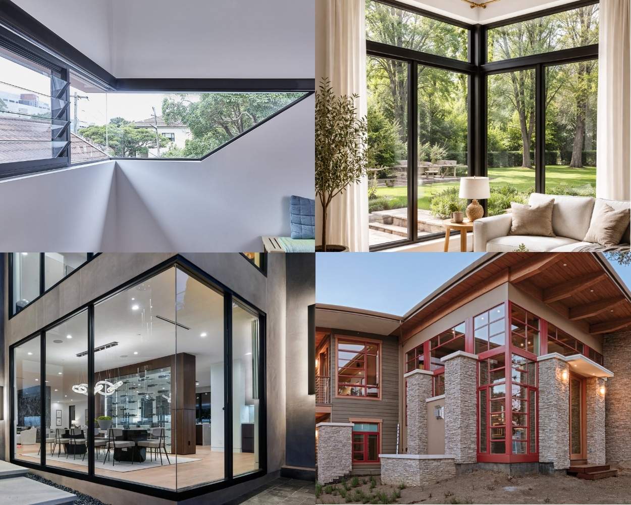 90-degree corner windows are specially designed window systems that meet at a clean, right-angle joint without the need for traditional corner posts. How these windows work: two panes of glass are joined using precision-engineered framing or structural glazing, creating the illusion that the glass bends around the corner. This yields a sleek, open appearance that floods interiors with daylight and connects indoor and outdoor spaces beautifully.