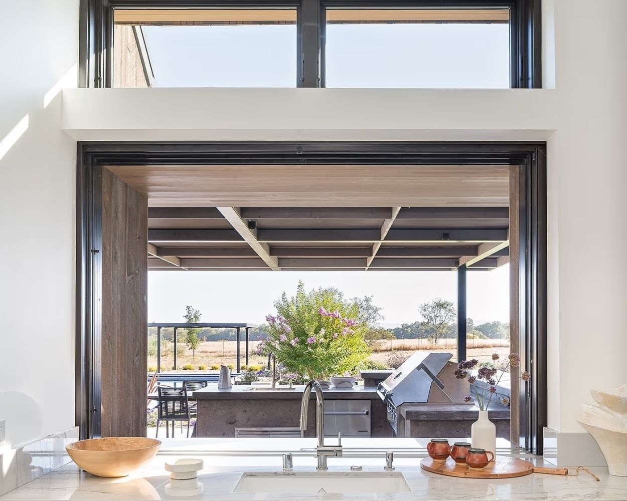 A pass-through window is a large operable window - often sliding, folding, or awning-style that opens to connect indoor and outdoor areas. They are especially popular between kitchens and patios, making it easy to pass food, drinks, or conversation between spaces.